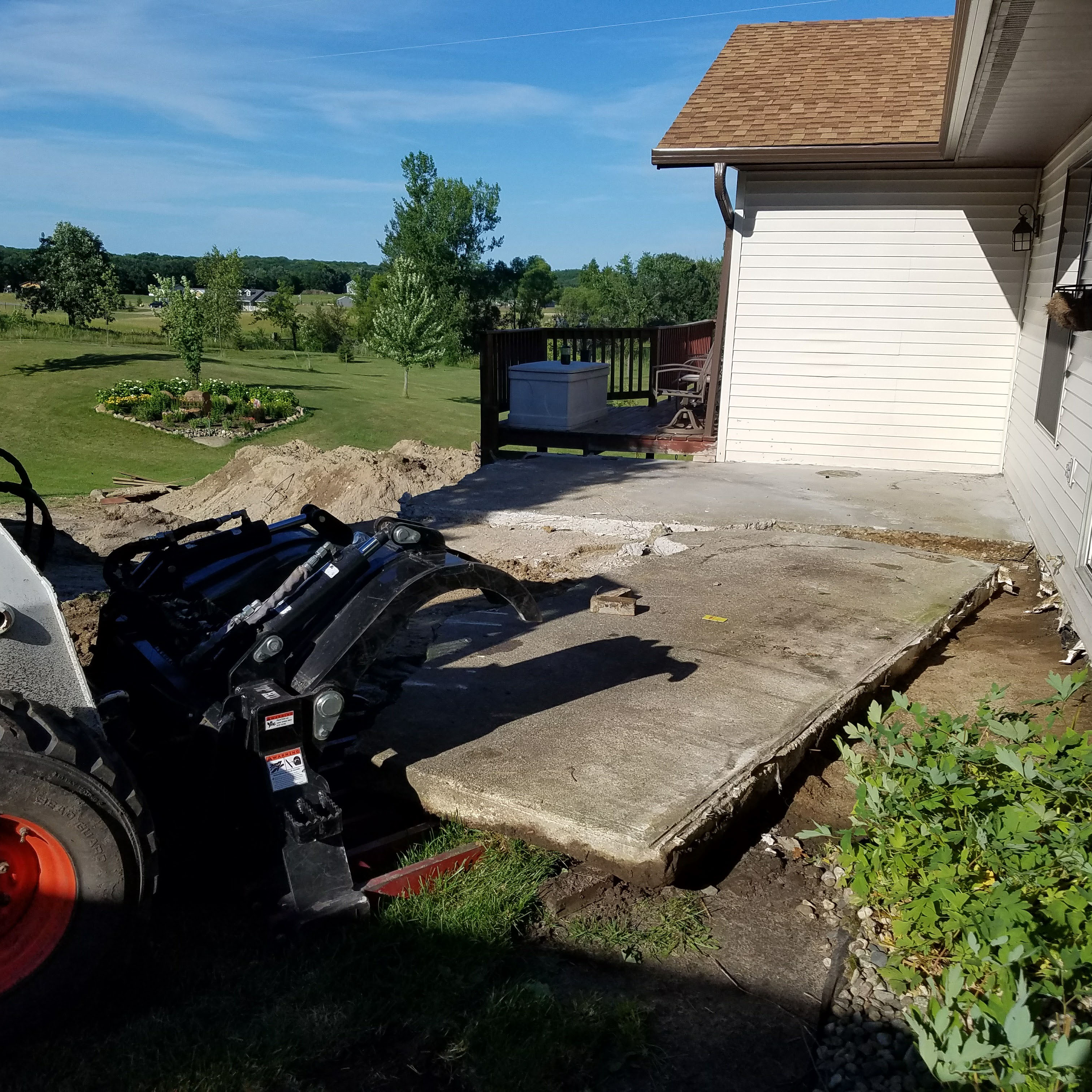 Is it time for a new patio? That old sidewalk has to go. The old building foundation is just in the way. Give us a call and let us haul it out for you.