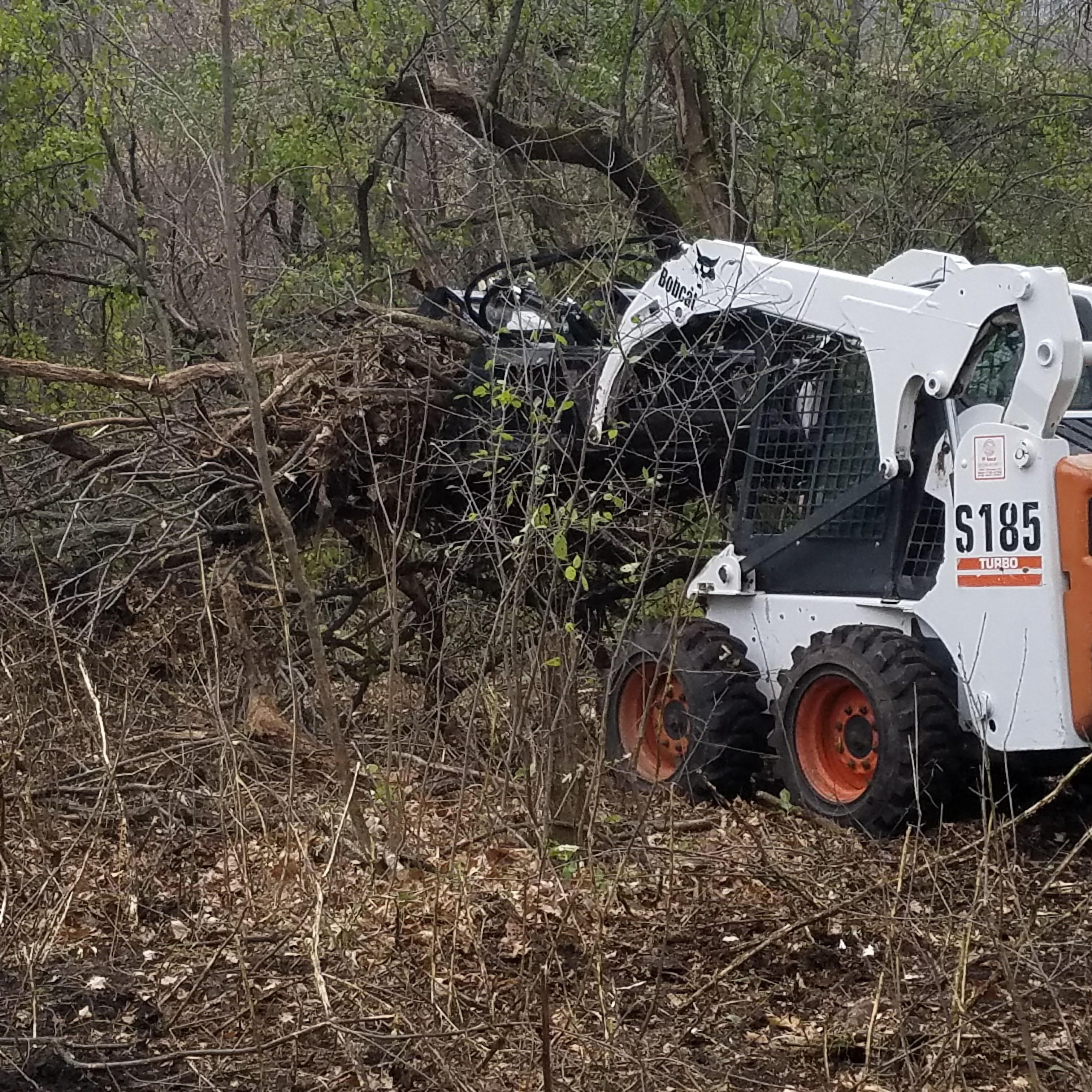 With our 60" brush mower and solid rubber tires we can remove overgrowth and shrubbery and mow down those overgrown areas with ease. If there trees that need to be pulled, like prickly ash, we can pull them and remove them.
