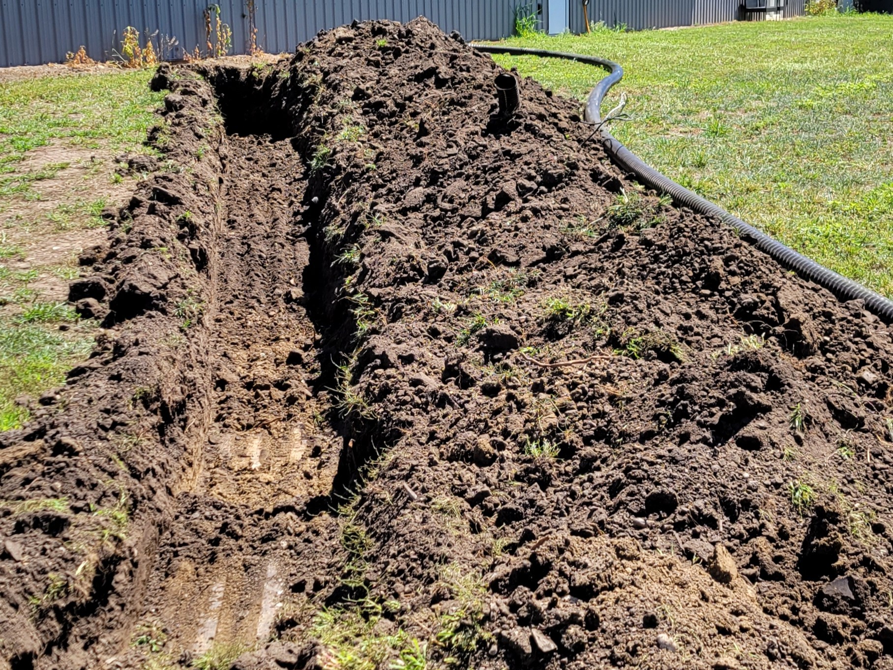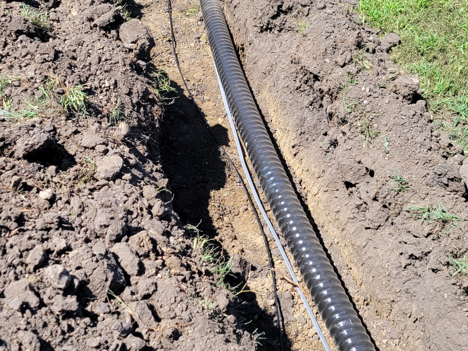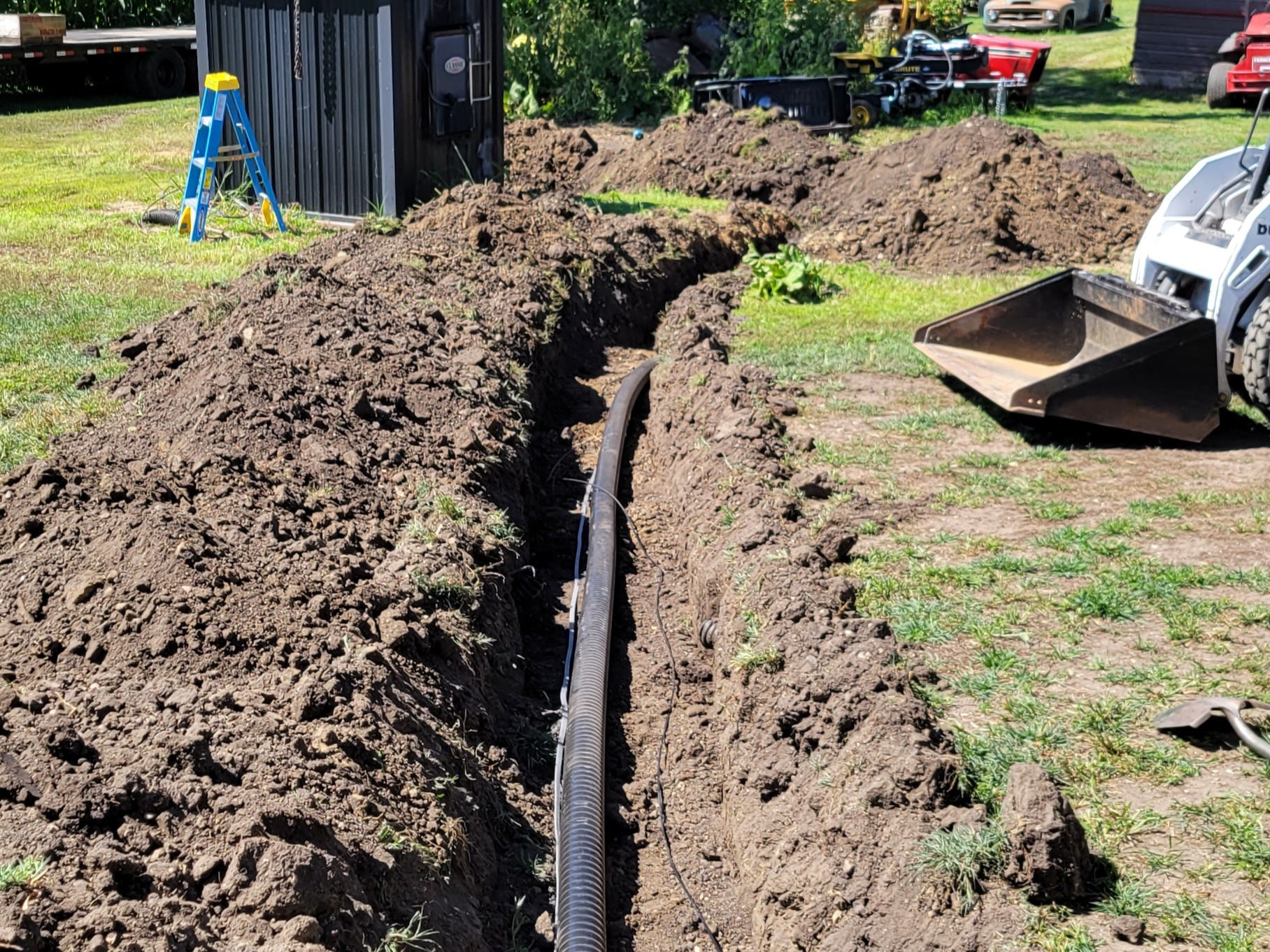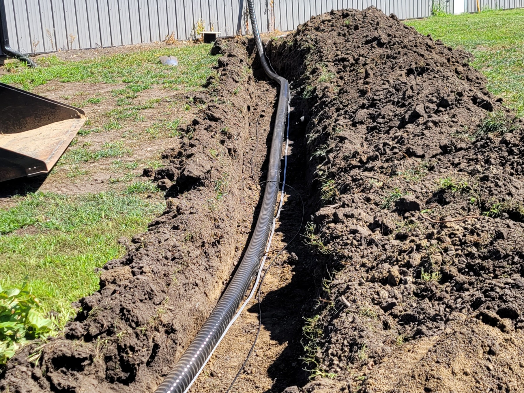 The customer contacted us to replace the old boiler line that was just pipes in a tube with no insulatin with heavy duty insulated boiler line. We dug up the old line, and hauled it away. Then we laid the new boiler line and new power wires and a CAT6e ethernet cable for a camera. We finished it up and backfilled it and releveled the land. new grass seed was applied on top.