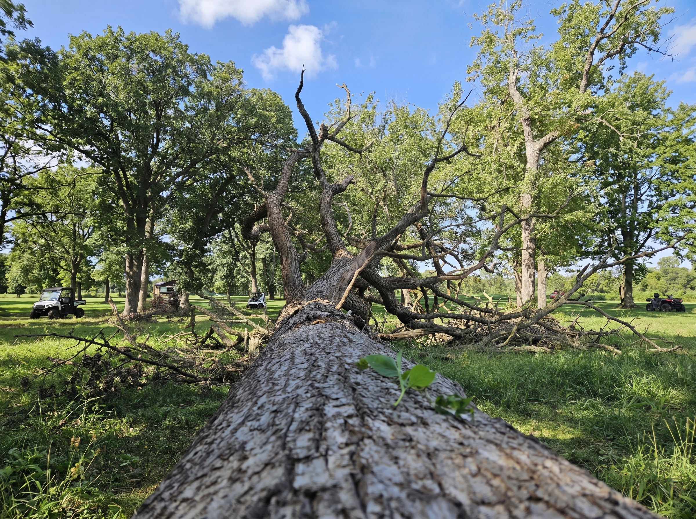 After the storm went thru the customers property, it was time to help clean up and get the large trees off the property. With our 36" Husquavarna saw and multiple smaller ones and a tree climer, we made short work of cleaning up the mess.